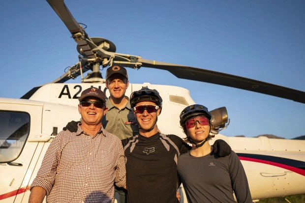 The journey starts in the sky, with sweeping aerial views of vineyards, mountain passes, and rolling farmlands as you’re flown deep into rugged terrain. Once dropped at a lofty starting point, the ride begins—fast, wild, and unforgettable. Expect technical descents, forested singletrack, rocky switchbacks, and open mountain paths that wind their way down into the valleys below.