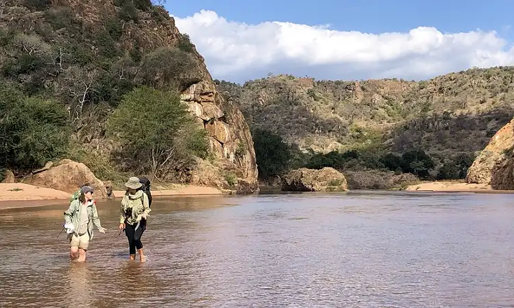 Your journey is anchored at a simple yet comfortable trails camp, with nourishing meals served each day and a dedicated game vehicle granting access to the concession’s more remote corners. Each day’s walk unveils a new aspect of this extraordinary wilderness. Highlights include standing at Crook’s Corner, where three countries converge at the meeting of two great rivers; exploring Lanner Gorge; wading along the sandy river bed of the Luvuvhu; or strolling beneath towering fever trees.