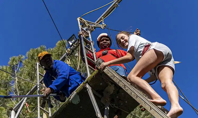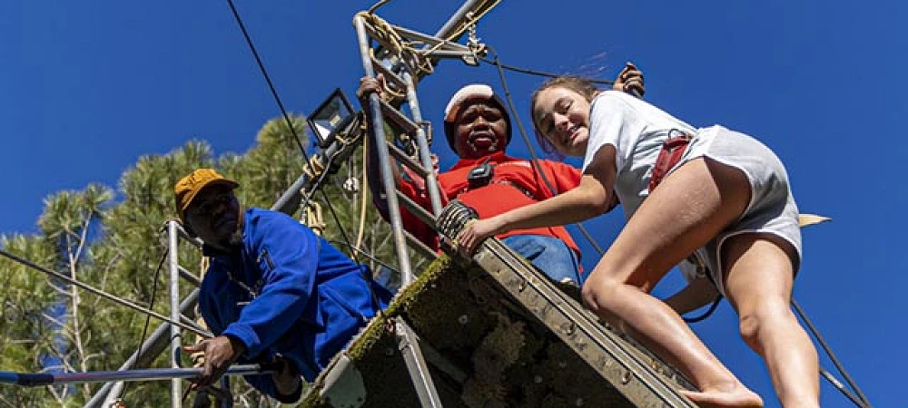 Set against the stunning backdrop of the Drakensberg, the trapeze rig is designed to challenge and excite. Participants climb to the platform, leap into the air, and swing with thrilling momentum, experiencing a rush like no other. The combination of height, motion, and skill makes the flying trapeze an unforgettable adventure that builds confidence, trust, and pure joy.