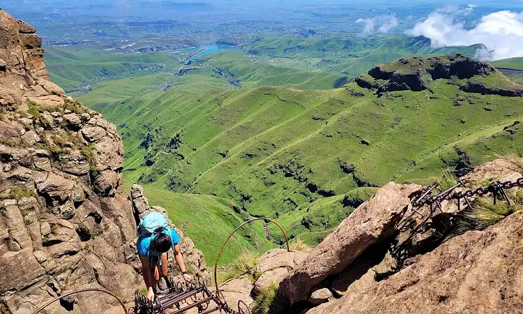 Covering approximately 40 km, the journey begins with an overnight at the charming Cavern Hotel in the Tugela Valley, before ascending to spend two nights at South Africa’s highest mountain lodge — your gateway to the Sentinel and the famous chain ladder climb to the summit.