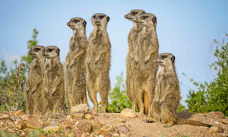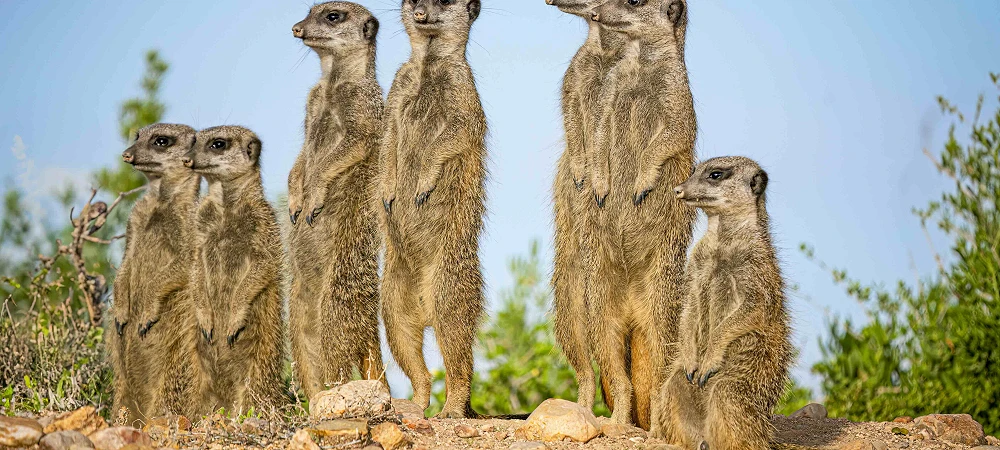 At Buffelsdrift Game Lodge, just 6.5 km outside Oudtshoorn on South Africa’s Garden Route, one of the most magical wildlife encounters awaits—our Meerkat Experience. Known as the “shy five,” meerkats are social, highly intelligent animals, and watching them at sunrise as they emerge from their burrows is a truly unforgettable moment.