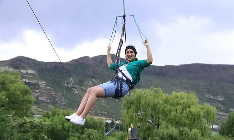 The ride kicks off with a safety briefing and gear-up session, where professional guides ensure that harnesses, helmets, and lines are perfectly fitted. Once you’re ready, it’s time to step off the launch platform and let gravity do the rest. You’ll soar over sandstone cliffs, green valleys, and winding streams, with panoramic views of Clarens stretching out below. The rush of wind in your face and the sheer speed of the glide make it an exhilarating adventure that leaves you wanting more.