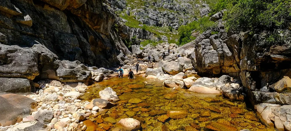 Experience the thrill of kloofing with Gravity Adventures in the rugged heart of the Cape Mountains. Set along the pristine Upper Witte River, this adrenaline-packed adventure combines hiking, scrambling, sliding, and swimming through a rocky gorge that few ever see. Just a 90-minute drive from Cape Town via the historic Bainskloof Pass, this secluded canyon offers a true wilderness escape amid the breathtaking beauty of the Cape Fold Mountains.