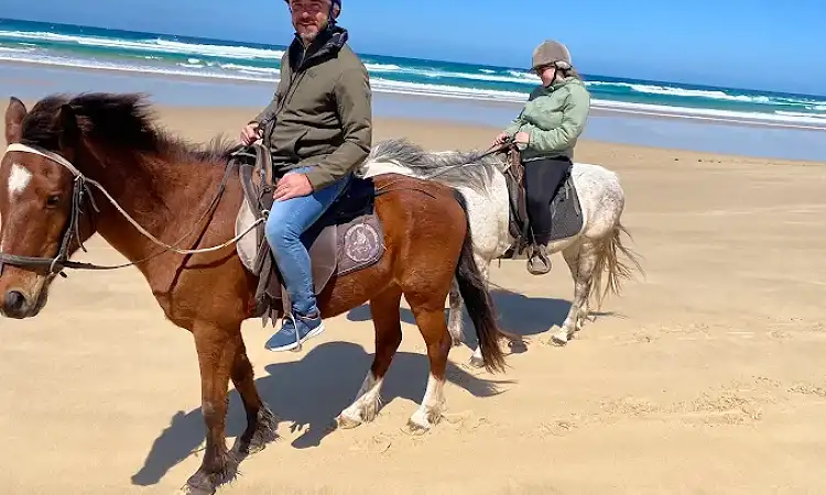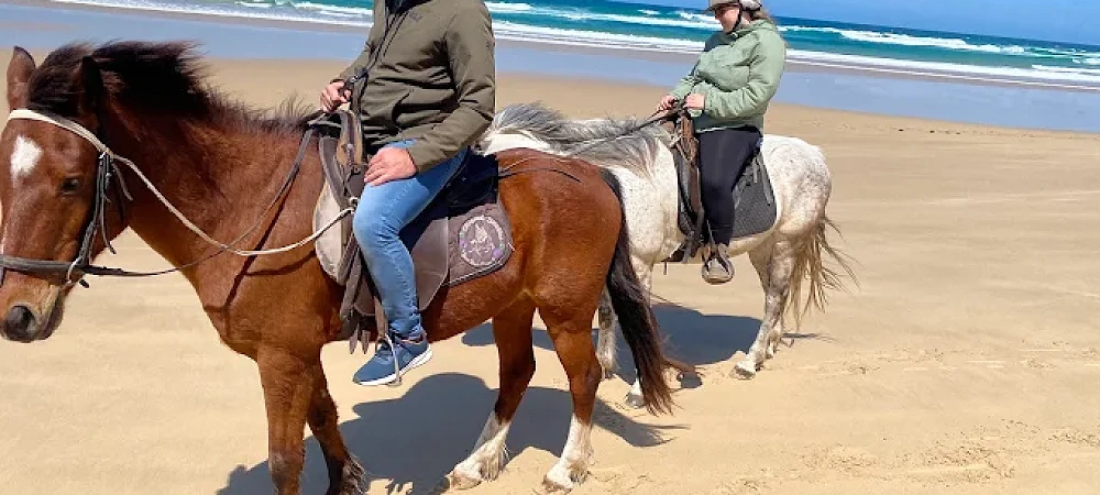 We have 2 rides which we offer on the farm: a one hour nature trail ride through the stunning Sardinia Bay and a 2 1/2 hour beach ride through the reserve and onto the beautiful beaches of Sardinia Bay. Both our rides are suitable for first time riders but we also cater for intermediate and experienced riders - riding well schooled horses and ponies.