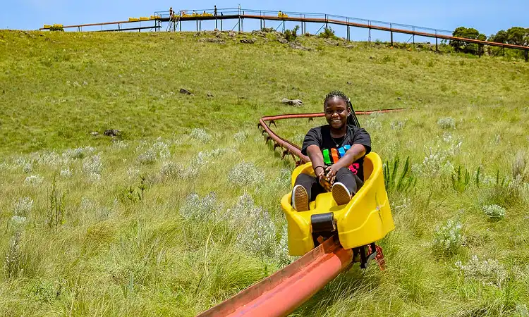 Get ready for the ride of your life on Africa’s longest toboggan track! Misty Mountain’s Long Tom Toboggan winds and whooshes its way down the scenic Long Tom Pass near Sabie in Mpumalanga. With a 1.7-kilometre steel track designed on the principles of the famous European alpine coaster, this thrilling adventure lets you twist and turn through grasslands, wildflowers, and pine forests at speeds of up to 45 km/h.