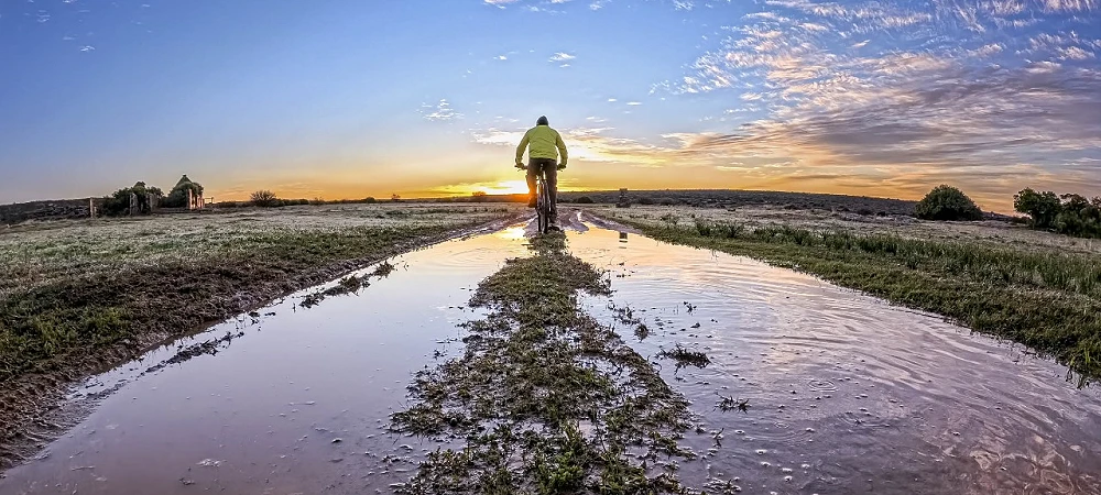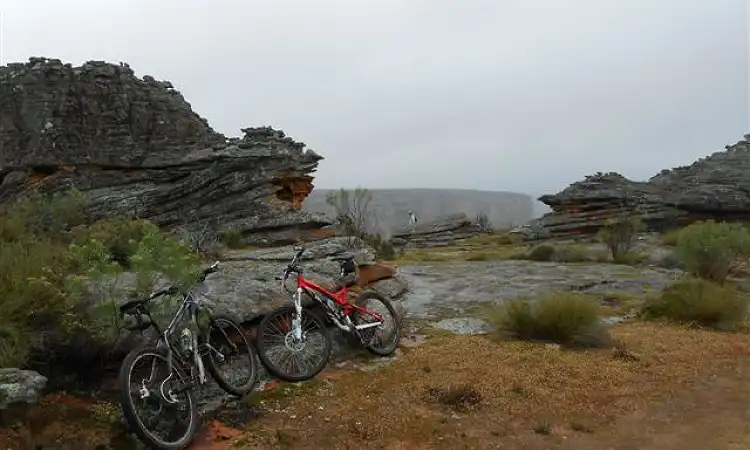 Bikes are available for hire, so you can arrive light and still enjoy the ride. Each trail is a blend of jeep track, single track, and wild Namaqualand scenery, leading you through rolling plains, sandstone formations, and fynbos-covered ridges. For those chasing distance and drama, the Waterval Trail (21km) drops riders into the farm’s spectacular canyon – a route that combines breathtaking views with serious pedalling.