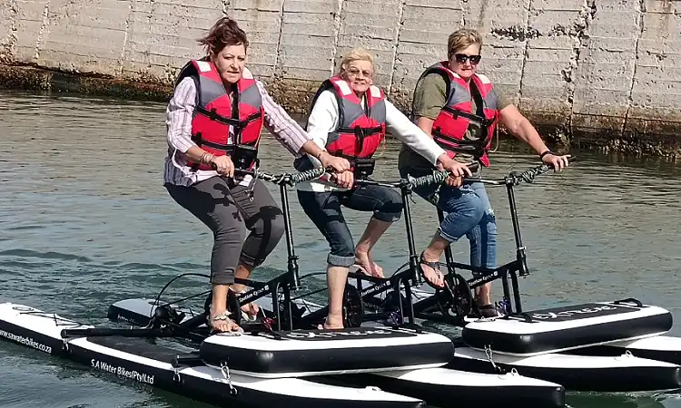 Experience the thrill of cycling on water with SA WaterBikes in Hermanus, where the ocean becomes your adventure playground. These stable, easy-to-ride water bikes let you glide across the waves, combining the fun of cycling with the magic of marine exploration.