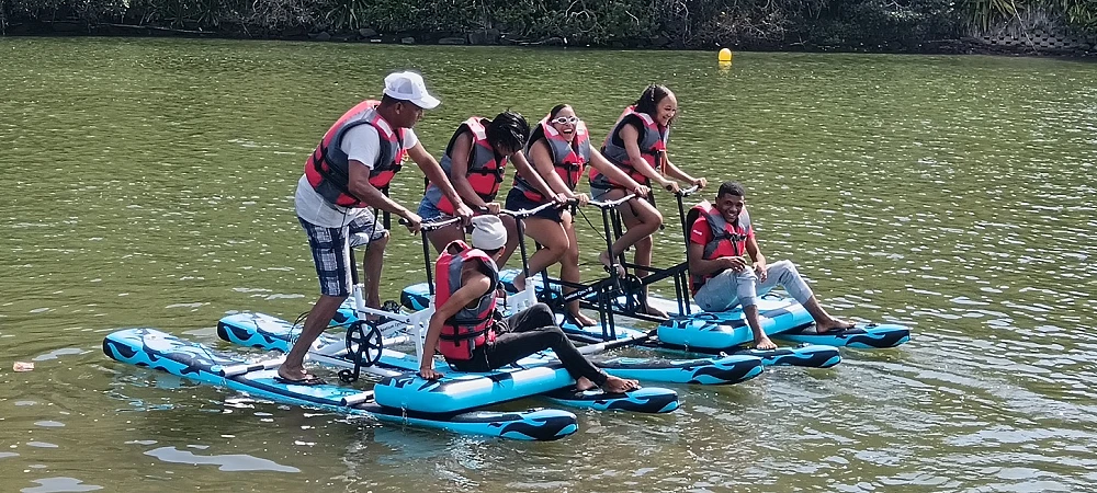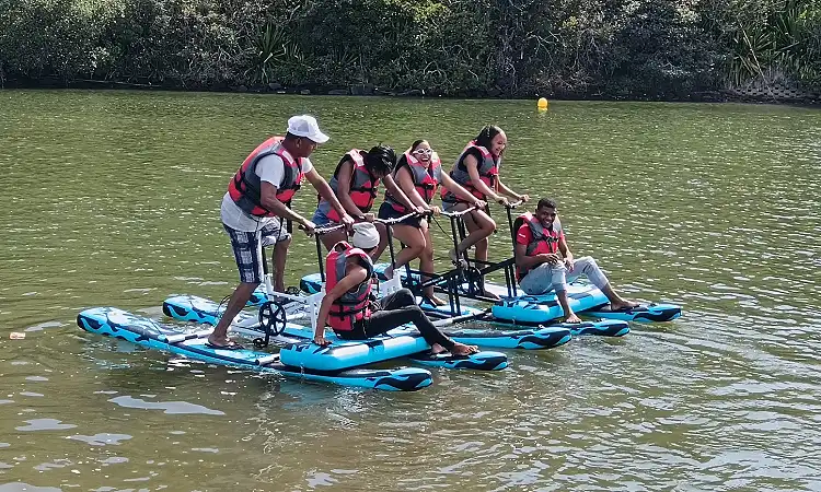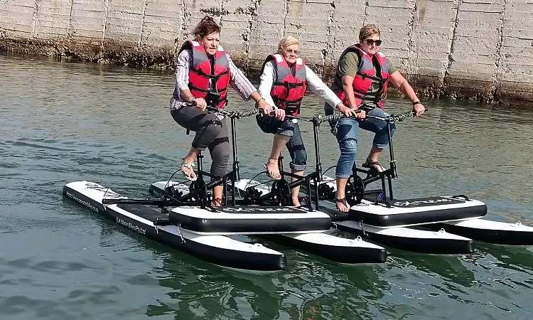 Water biking is safe, eco-friendly, and requires no prior experience, making it ideal for families, couples, or solo adventurers. You’ll get the exhilaration of a water sport without needing to balance like on a surfboard or kayak—the pontoons keep everything steady while you pedal with ease.