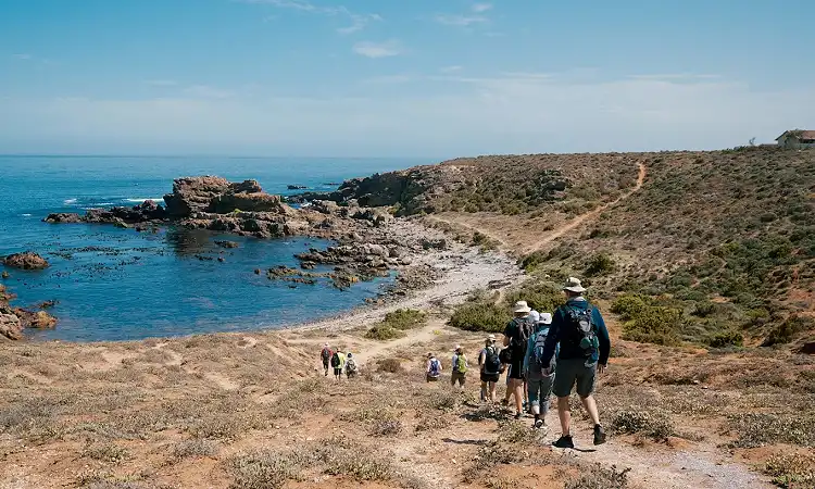 Choose from a variety of routes: the Five-Day Trail covers 61 km over four days, while shorter Two-Day Trails average 22 km, ideal for a mid-week or weekend getaway. Hikers traverse diverse terrain including beaches, coastal cliffs, jeep tracks, and single paths, offering spectacular views of the ocean, seasonal wildflowers, whales, and dolphins.
