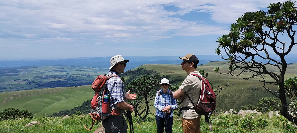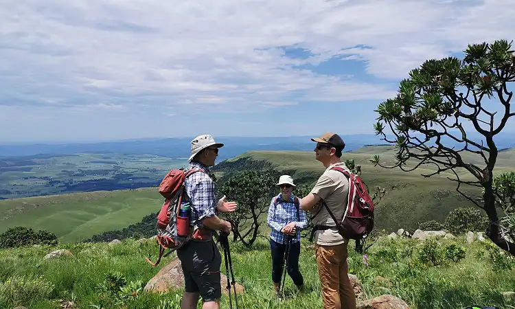 Start on ancient logging paths through South Africa’s second-largest indigenous forest, home to duiker, Samango monkeys, and the rare Karkloof Blue butterfly. Ascend Mt. Gilboa (1,768 m) for spectacular views, then meander through indigenous forest and grasslands to Grey Mare’s Falls. Enjoy a picnic lunch overlooking the 900-hectare Karkloof Nature Reserve. Alternative mist-belt forest trails are available for those preferring a gentler pace.