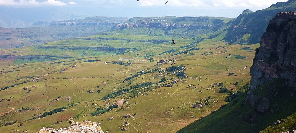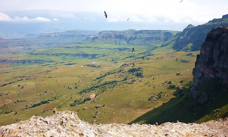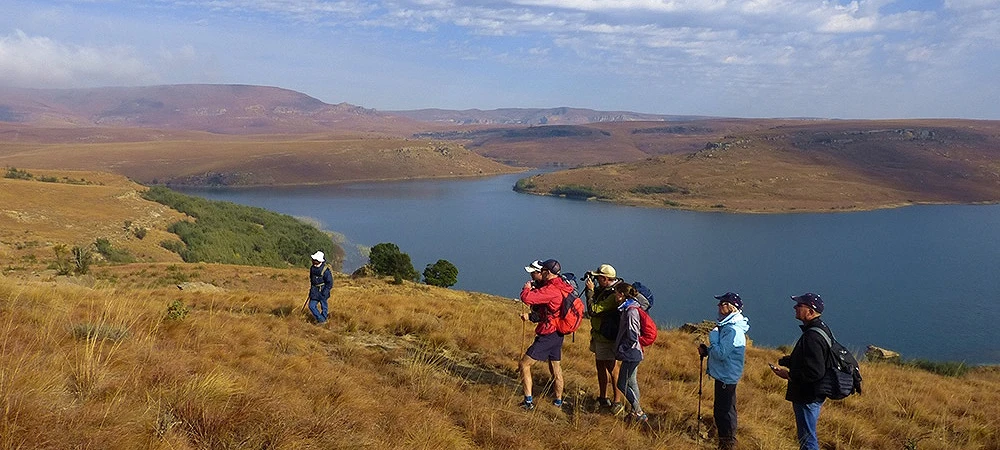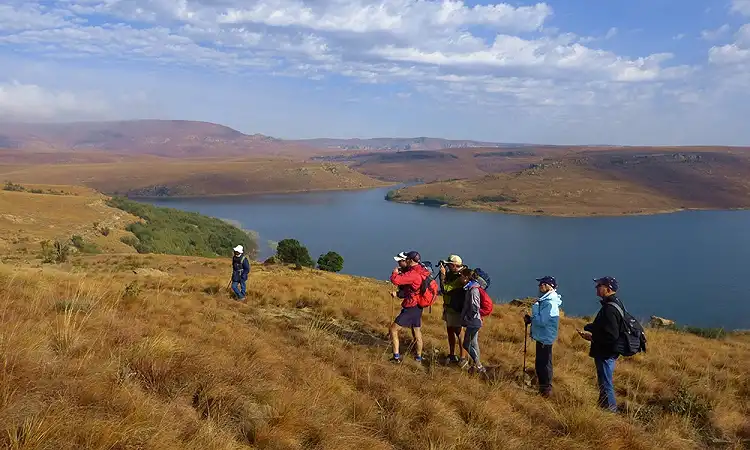 On day two, visit a protected colony of Cape and Bearded Vultures — whose effortless flight over the rugged cliffs provides an unforgettable highlight. From there, the trail continues along the ridge with sweeping panoramas and a dramatic viewpoint overlooking Sterkfontein Dam.