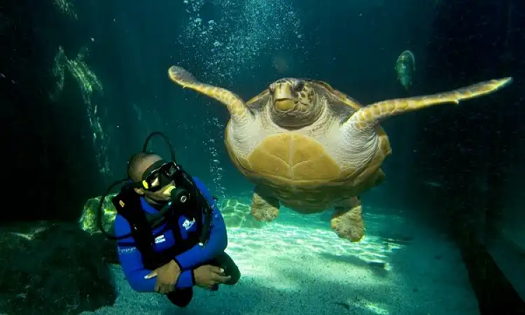 Unlike traditional scuba diving, aquarium diving focuses on guided experiences inside the aquarium’s massive tanks. You’ll glide through vibrant displays featuring schools of fish, playful rays, curious turtles, and even ragged-tooth sharks. Each dive is carefully supervised by trained professionals who ensure safety while providing fascinating insights into marine ecosystems, conservation, and the natural behaviours of the creatures around you.